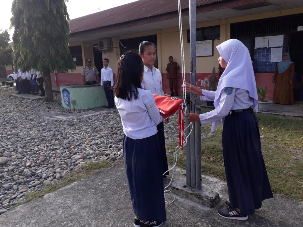 Kapolsek Lawe Bulan Iptu Nursodik laksanakan sebagai Pembina Upacara Bendera di SLTP N 3 Kutacane di Desa Simpang Empat Kecamatan Lawe Bulan. Senin (27/01/2020) Pukul 08.00 Wib.