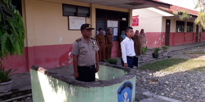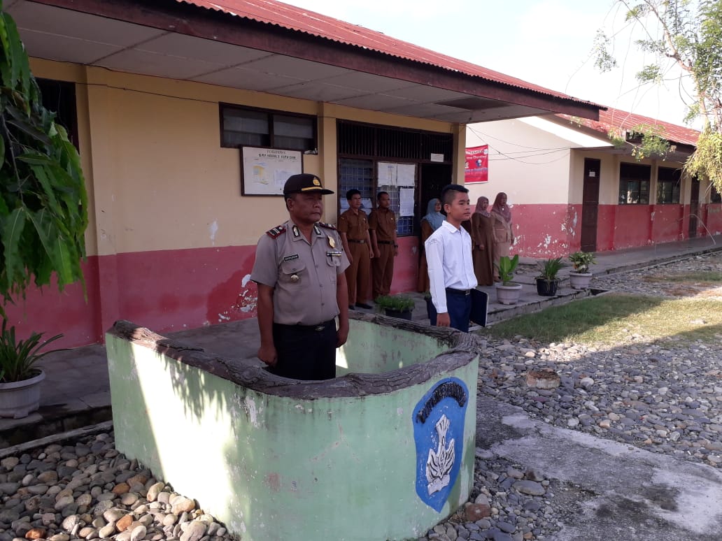 Kapolsek Lawe Bulan Iptu Nursodik laksanakan sebagai Pembina Upacara Bendera di SLTP N 3 Kutacane di Desa Simpang Empat Kecamatan Lawe Bulan. Senin (27/01/2020) Pukul 08.00 Wib.