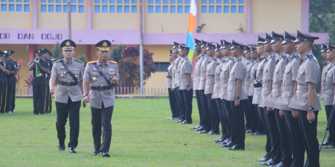 Kapolda Aceh Irjen Pol. Drs. Wahyu Widada, M. Phil, melantik sebanyak 210 siswa Diktukba Polri Tahun Anggara 2019/202, di lapangan Tri Brata, SPN Polda Aceh, Senin (2/3) pagi.