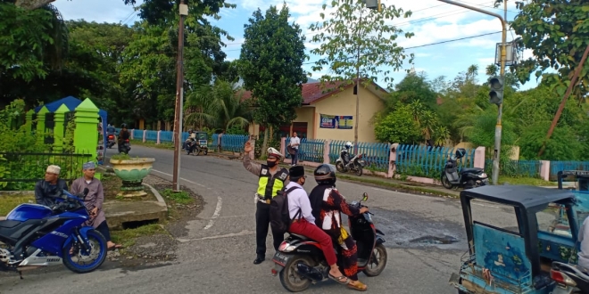 Berikan Kenyamanan Di Jalan Raya, Anggota Sat Lantas Polres Aceh Tenggara Laksanakan Giat Strong Point Pagi