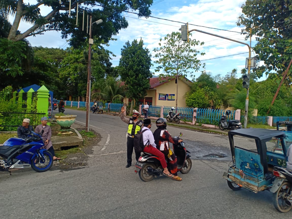 Salah satu cara Satuan Lalu Lintas (Satlantas) Polres Aceh Tenggara, Polda Aceh, menjamin kelancaran arus lalu lintas dalam mengurai kemacetan, dengan melaksanakan pengaturan lalu lintas dalam wilkum Polres Agara (05/01/2021) pukul 06.30 WIB.