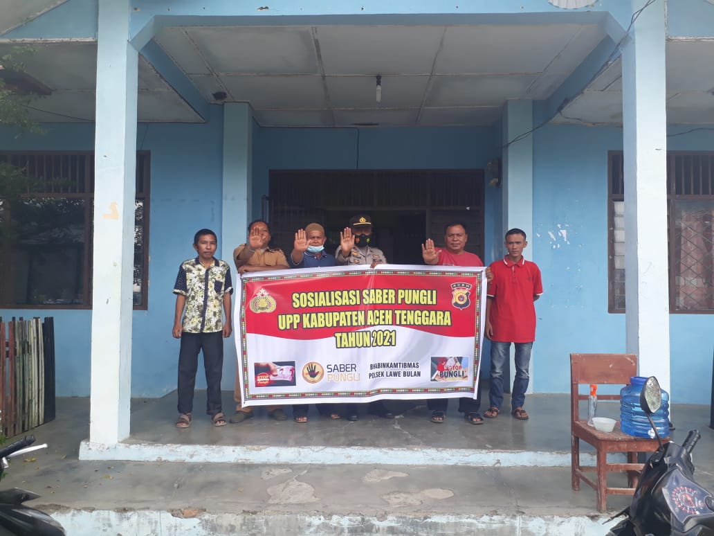 Polsek Lawe Bulan, Polres Aceh Tenggara, Polda Aceh sejauh ini gencar melakukan sosialisasi saber pungli kepada masyarakat Wilkum Polsek Lawe Bulan. Selasa (05/01/2021) Pukul 09.30 Wib.