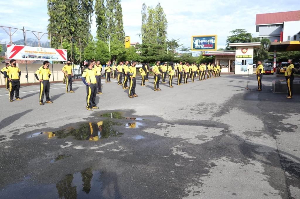 Personel Polers Aceh Tenggara melaksanakan Olah Raga senam di lapangan Apel Mapolres Aceh Tenggara, Jum’at (08/1/2021) Pukul 07.30 Wib.