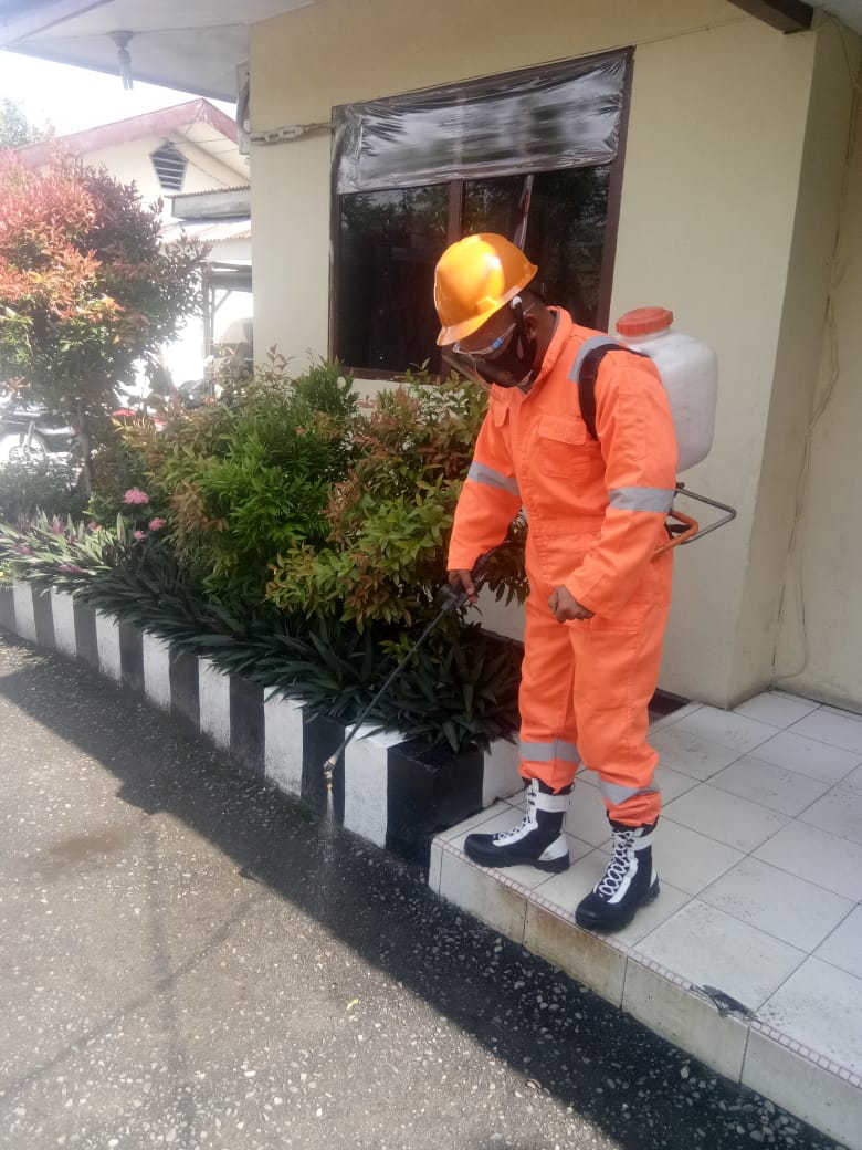 Kapolres Aceh Tenggara AKBP Wanito Eko Sulistyo, S.H.,S.I.K. “mengatakan kegiatan penyemprotan yang dilakukan di lingkungan Mako Polres dan Polsek jajaran sebagai upaya untuk melakukan pencegahan terhadap penyebaran virus Covid19”. kata Kapolres.