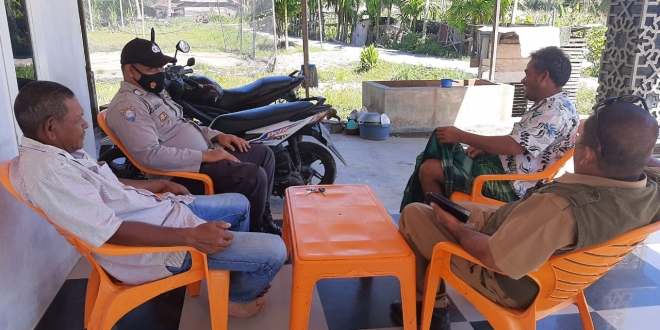 Bhabinkamtibmas Polsek Lawe Alas Bripka Dedi Aderiansyah melaksanakan Sosialisasi Himbauan Penggunaan Masker kepada Masyarakat di Desa Darul Amin Kecamatan. Lawe Alas Kabupaten Aceh Tenggara, Minggu (02/5/2021) Pukul 09.30 Wib