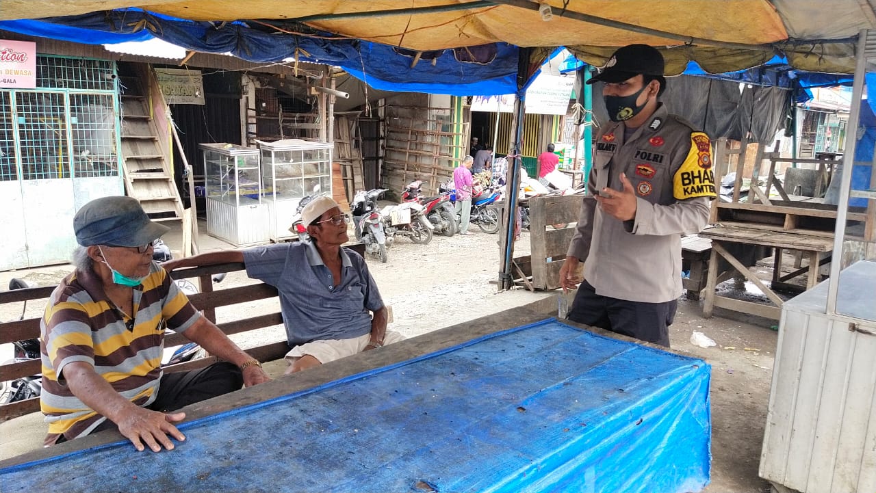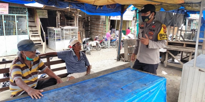 Bhabinkamtibmas Polsek Lawe Sigala Bripka holan vianda melaksanakan giat sosialisasi tentang protokol kesehatan di desa Lawe sigala barat kecamatan Lawe Sigalagala kabupaten Aceh tenggara., Senin (17/5/2021) Pukul 10.00 Wib