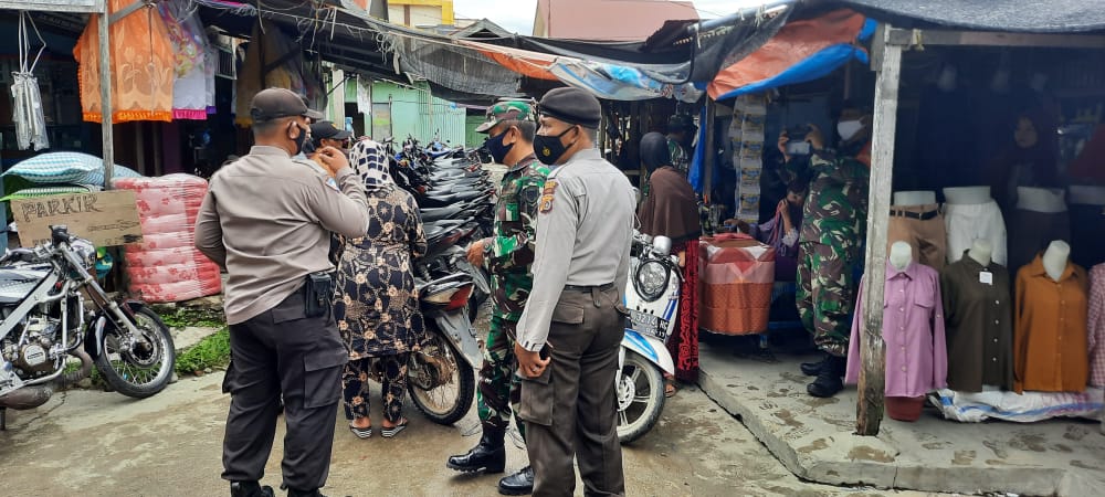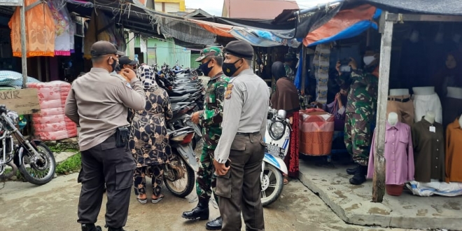 Personel Polsek Babussalam dan Koramil Himbau Warga Untuk Mematuhi Protokol Kesehatan