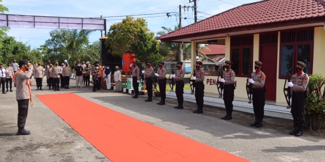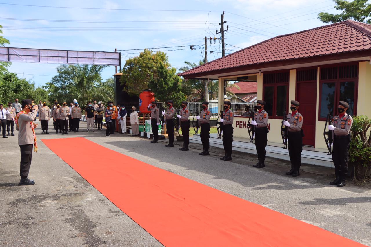 Kunjungan Kerja Kapolda Aceh Irjen Pol. Drs. Wahyu Widada, M. Phil, ke Polres Aceh Singkil disambut dengan hormat jajar sejumlah personel di penjagaan Mapolres Aceh Singkil, Sabtu (29/5/21) pagi.