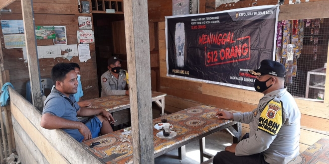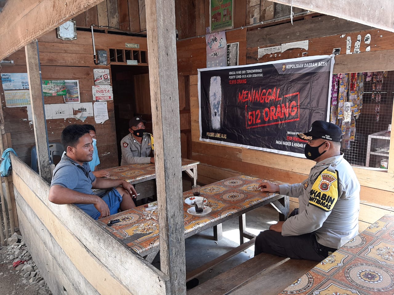 Bhabinkamtibmas Polsek Lawe Alas Bripka Dedi Aderiansyah dan Bripka Dasmin Desky melaksanakan Sosialisasi Himbauan Penggunaan Masker kepada Masyarakat di Desa Rumah Luar Kecamatan Tanoh Alas Kabupaten Aceh Tenggara, selasa (01/6/2021) pukul 10.00 wib