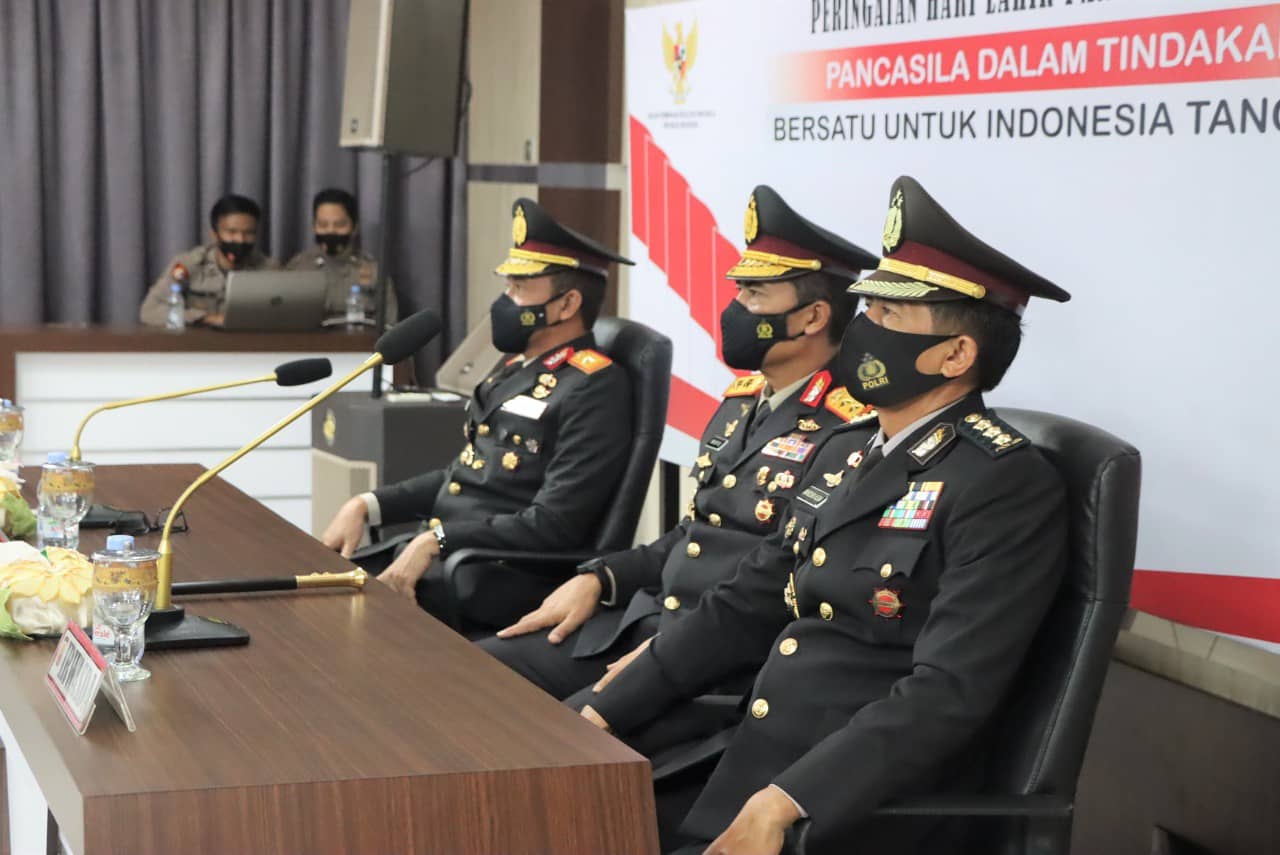 Banda Aceh – Kepala Kepolisian Daerah (Kapolda) Aceh Irjen Pol Drs. Wahyu Widada, M. Phil, Selasa (1/6/2021) mengikuti upacara peringatan Hari Lahir Pancasila yang dipimpin langsung oleh Presiden Joko Widodo di aula Machdum Sakti Mapolda Aceh.