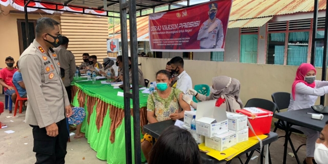 Pelaksanaan Gerai Vaksin Presisi Massal di Polsek Babul Makmur Dipantau langsung Oleh Kapolres Aceh Tenggara, AKBP Bramanti Agus Suyono, SH, S.I.K, M.H, Kabag Ops, Kasat Intelkam, Kasat Reskrim , Kasat Binmas Polres Aceh Tenggara,Dan didampingi Kapolsek Babul Makmur.