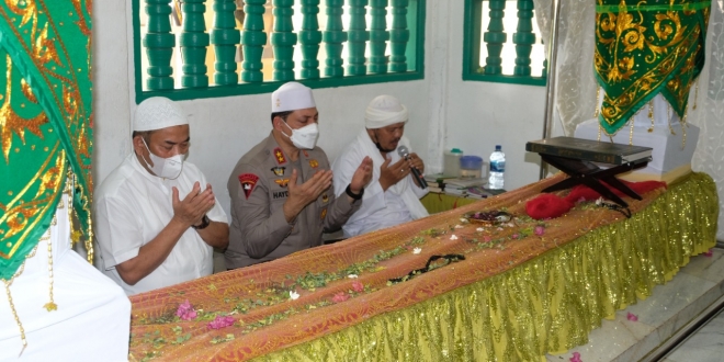 ‘ Kemudian Kapolda dan rombongan bertolak menuju makam Tgk. Dianjong yang dikenal dengan nama aslinya Al Habib -Sayyid Abubakar bin Husain Bilfaqih dan di sana juga melakukan pembacaan yasin, berdo’a dan menabur bunga, ” kata Kabid Humas.