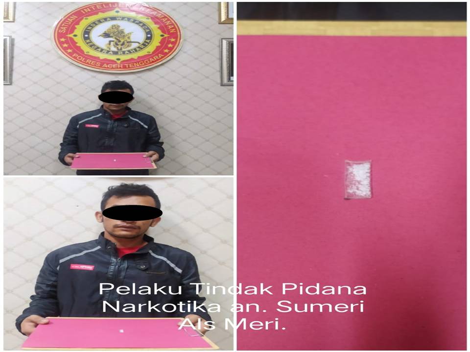 Kapolres Aceh Tenggara AKBP Bramanti Agus Suyono, S.H,.S.I.K, M.H. melalui Ksat Intelkam Iptu Henry Suparto Mengatakan dari penangkapan tersangka berinisial M (29) didapati 1 (Satu) Paket Narkotika jenis sabu dengan berat 0,05 gram. Jelasnya.