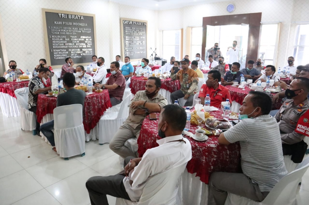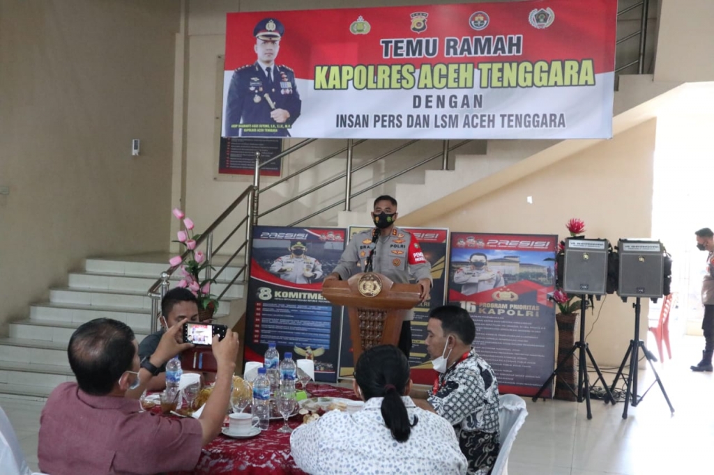 Kapolres Aceh Tenggara AKBP Bramanti Agus Suyono, S.H., S.I.K., M.H didampingi Kabag Ops, Kasat Intel, Kasat Reskrim, Kasat Lantas, Kasat Sabhara dan Kasubbag Humas, temu ramah dengan para wartawan, Senin (30/8/2021) Pukul 10.00 Wib.