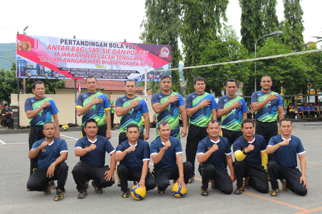 Turnamen bola voli yang secara resmi dibuka oleh Kapolres Aceh Tenggara diikuti oleh gabungan Bag, Sat dan Sie serta Polsek Jajaran di wilayah Polres Aceh Tenggara.
