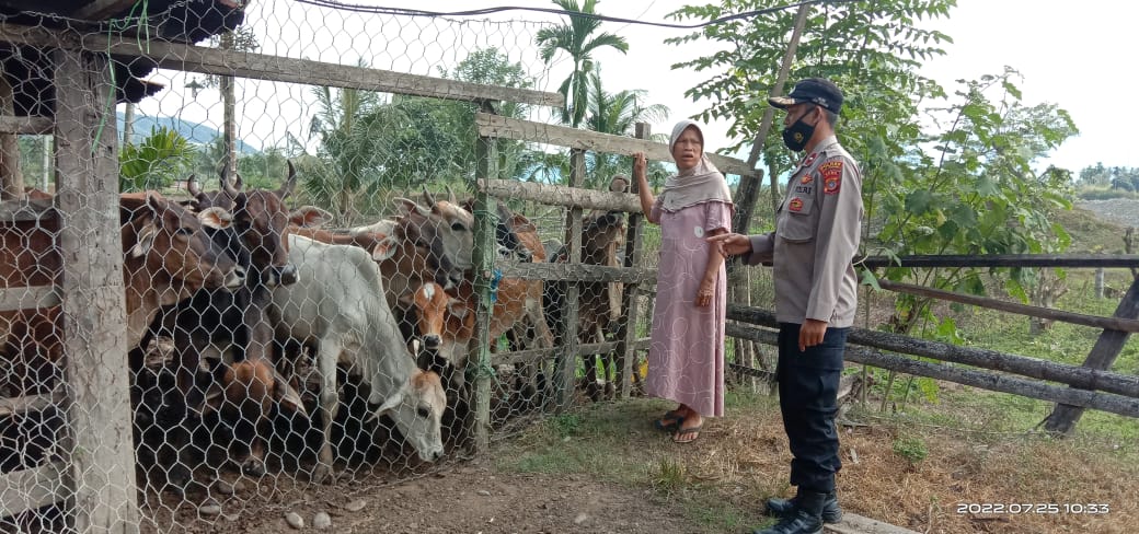 Pemantauan dilakukan Babhinkamtibmas yang diwilayah desa binaannya yang memelihara hewan ternak seperti sapi yang di Desa Kutambaru, Kecamatan Lawe Bulan, Kabupaten Aceh Tenggara, Senin (01/8/2022) pukul 10.00 wib