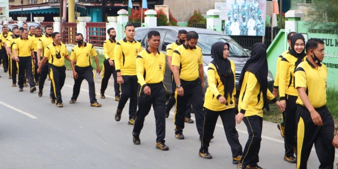 Kegiatan olahraga pagi ini bersama seluruh anggota Polres Aceh Tenggara jalan sehat ke luar Mako. Sebelum melaksanakan jalan santai seluruh personel terlebih dahulu mengikuti apel pagi dilanjutkan pemanasan di halaman Polres Aceh Tenggara.