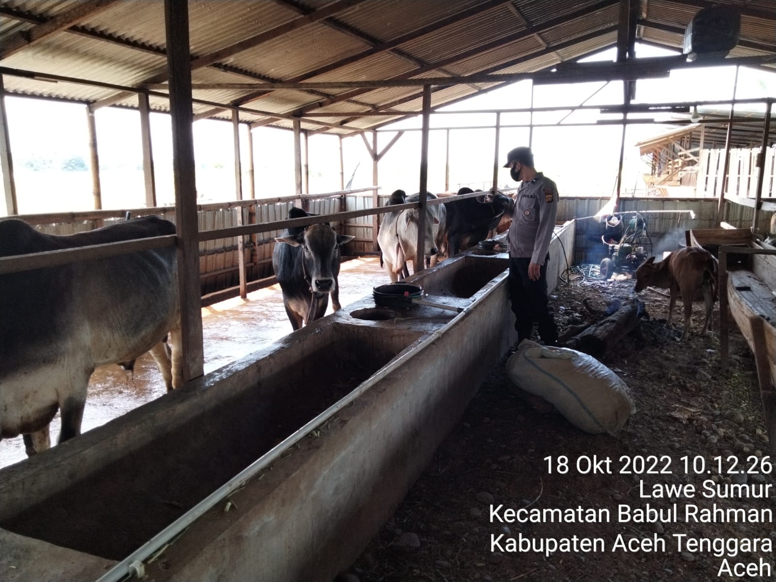 Mencegah terjadinya penyebaran PMK, Polres Aceh Tenggara menerjunkan anggotanya terutama Bhabinkamtibmas Desa Kandang Bbelang Mandiri Bripka Tenang untuk memantau perkembangan penyebaran PMK di wilayah Binaan Desa Kandang Bbelang Mandiri Kecamatan Lawe Bulan Kabupaten Aceh  Tenggara.