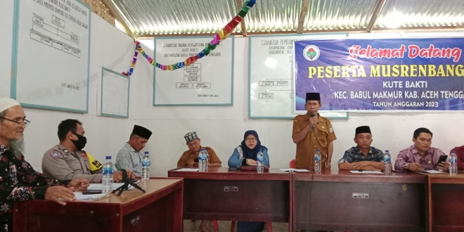 Personel Polsek Babul Makmur Briptu Yasir menghadiri kegiatan Musrenbangdes di Desa Kute Bakti Kecamatan Babul Makmur Kabupaten Aceh Tenggara , Kamis (08/12/2022).
