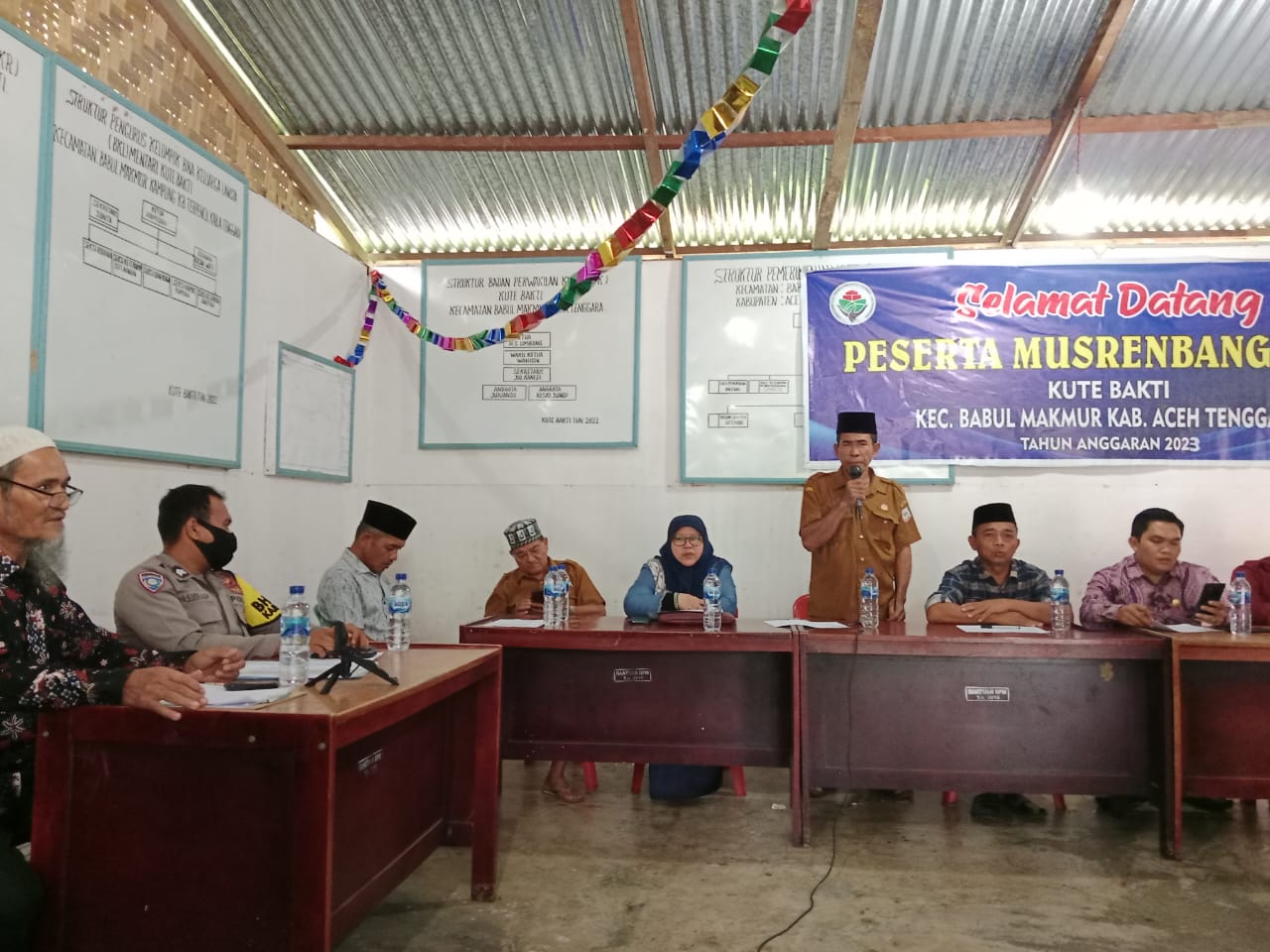 Personel Polsek Babul Makmur Briptu Yasir menghadiri kegiatan Musrenbangdes di Desa Kute Bakti Kecamatan Babul Makmur Kabupaten Aceh Tenggara , Kamis (08/12/2022).