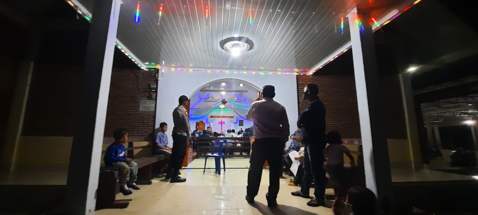 Jajaran Polsek Polres Aceh Tenggara melakukan pengamanan kebaktian atau Misa jelang perayaan Natal tahun 2022 di Wilayah Hukum Polres Aceh Tenggara. Minggu (18/12/2022).