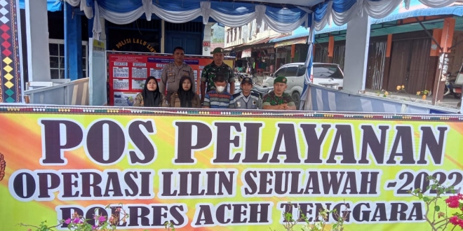 Personel Polres Aceh Tenggara bersama Personel Kodim 0108/Agara serta dari Dishub, Sat Pol PP melaksanakan kegiatan pengamanan di Pos Pelayanan Ops Lilin Seulawah 2022, Sabtu (31/12/22).