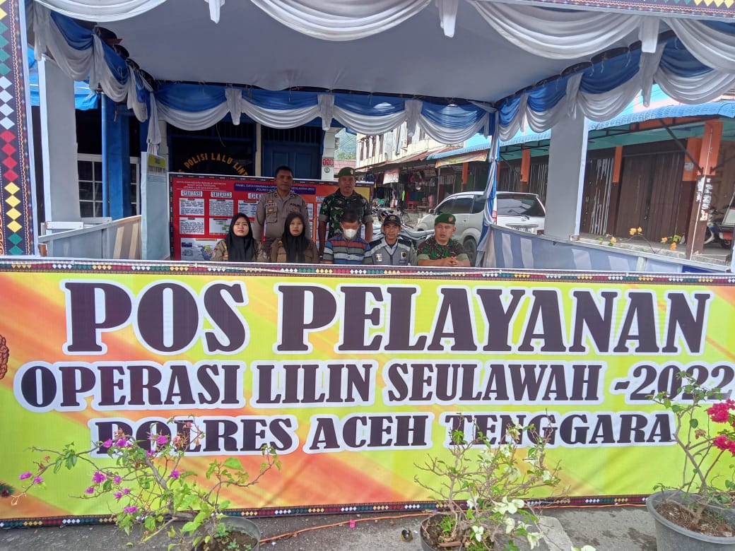 Personel Polres Aceh Tenggara bersama Personel Kodim 0108/Agara serta dari Dishub, Sat Pol PP melaksanakan kegiatan pengamanan di Pos Pelayanan Ops Lilin Seulawah 2022, Sabtu (31/12/22).