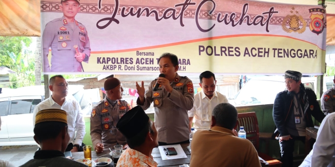 Polres Aceh Tenggara kembali menggelar kegiatan “Jum’at Curhat” guna mendengarkan keluhan warga secara langsung di Warung Kopi Desa Terutung Pedi Kecamatan Babussalam Kabupaten Aceh Tenggara, Jum’at (20/01/2023).