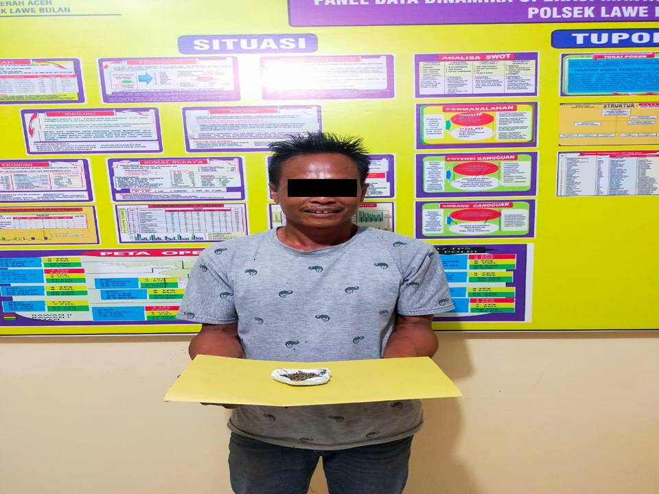 Kapolres Aceh Tenggara AKBP R, Doni Sumarsono, S.I.K., M.H melalui Kapolsek Lawe Bulan Ipda Yousnaidi mengatakan dari penangkapan terhadap tersangka yang berinisial SM (41) Tani di dapati 1( Satu )Bungkus kecil Narkotika jenis Ganja seberat : 4,36 ( Empat koma tiga puluh enam )Gram., Jelas Kapolsek.