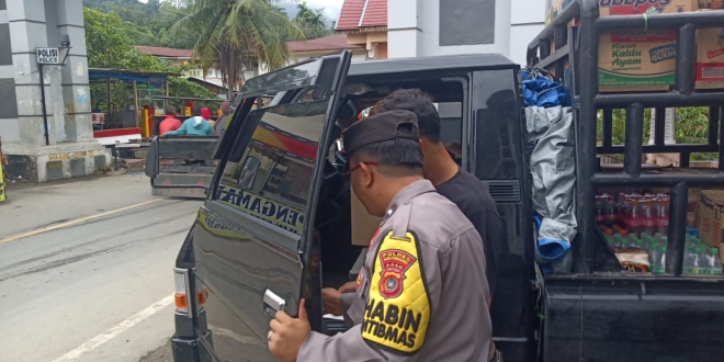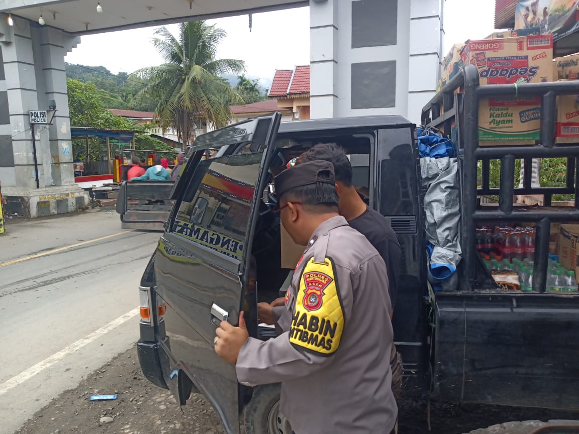Personel Polsub Sektor Lawe Pakam Lakukan Pemeriksaan Kendaraan di Perbatasan, Aceh-Sumut