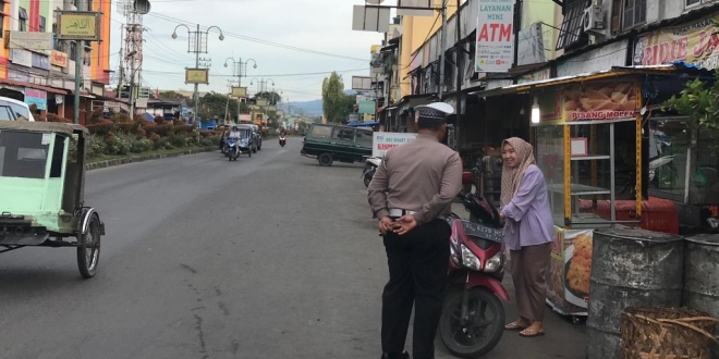Personel Sat Lantas Polres Aceh Tenggara Melaksanakan Pengaturan serta pemantauan arus lalulintas terhadap masyarakat pengguna jalan yang berlokasi di Jalan Jenderal Ahmad Yani Kutacane, Kecamatan Babussalam Kabupaten Aceh Tenggara, Minggu (21/1/23).