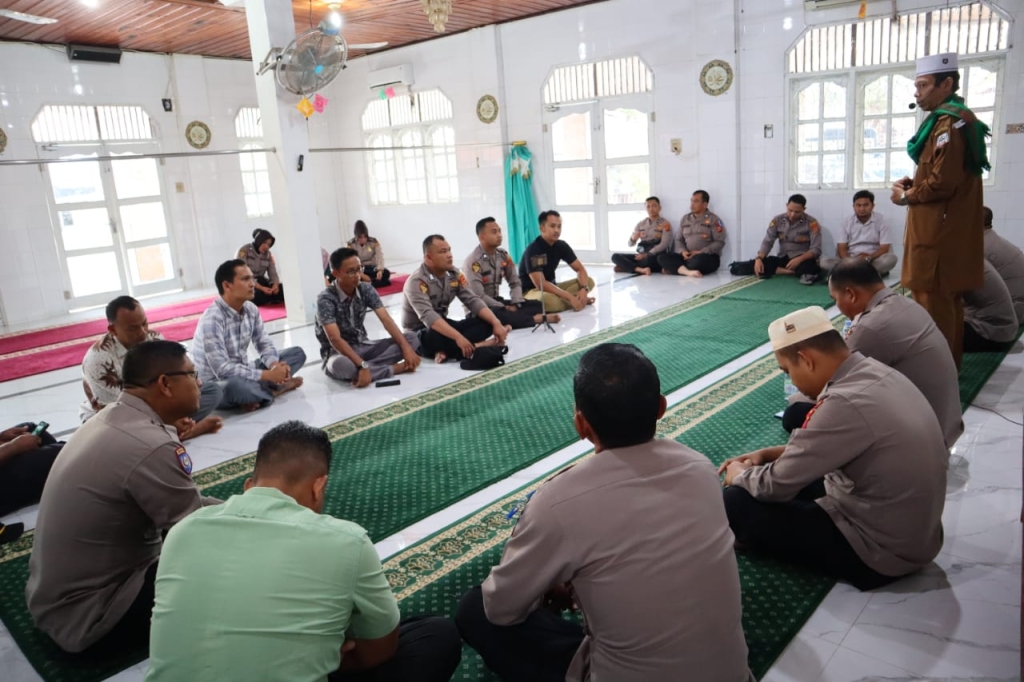 Kapolres Aceh Tenggara AKBP R, Doni Sumarsono, S.I.K., M.H bersama Perwira Polres dan personel Polres Aceh Tenggara yang beragama islam mengikuti bimbingan rohani dan mental di Mushola Babut Taqwa Aspol Kutacane setelah pelaksanaan apel pagi sedangkan yang beragama nasrani melaksanakan kegiatan bimbingan rohani dan mental di aula Wira Pratama, Kamis (09/2/23) sekitar pukul 08.30 Wib.
