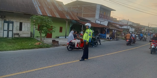 Personel Sat Lantas Polres Aceh Tenggara melaksanakan kegiatan prentif dan preventif secara humananis guna mengatur sejumlah titik rawan kemacetan dan atau rawan terjadinya pelanggaran peraturan Lalulintas guna mewujudkan Kamseltibcar Lantas di wilkum Polres Aceh Tenggara, Minggu (26/2/23)