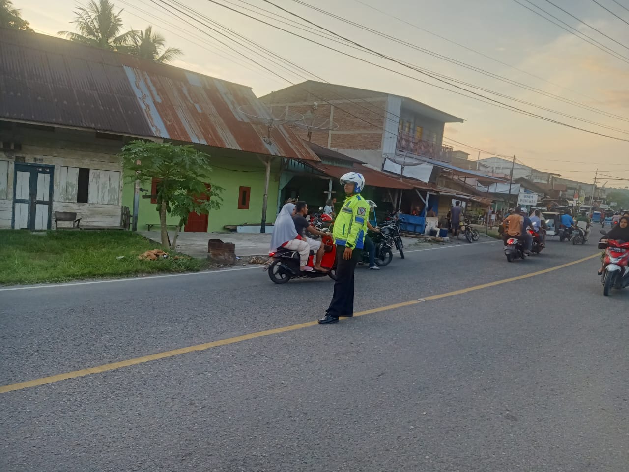 Personel Sat Lantas Polres Aceh Tenggara melaksanakan kegiatan prentif dan preventif secara humananis guna mengatur sejumlah titik rawan kemacetan dan atau rawan terjadinya pelanggaran peraturan Lalulintas guna mewujudkan Kamseltibcar Lantas di wilkum Polres Aceh Tenggara, Minggu (26/2/23)