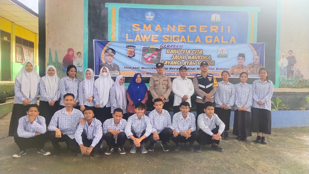 Polsek Lawe Sigala-Gala Salah Satu upaya Polri dalam mencegah penyalahgunaan narkoba khususnya di kalangan pelajar dan pemuda yang sampai saat ini cukup mengkhawatirkan, maka Polsek Lawe Sigala Polres Aceh Tenggara yang dalam hal ini Kanit Binmas Polsekmemberikan penyuluhan dan sosialisasi tentang bahaya Narkoba dikalangan pelajar.