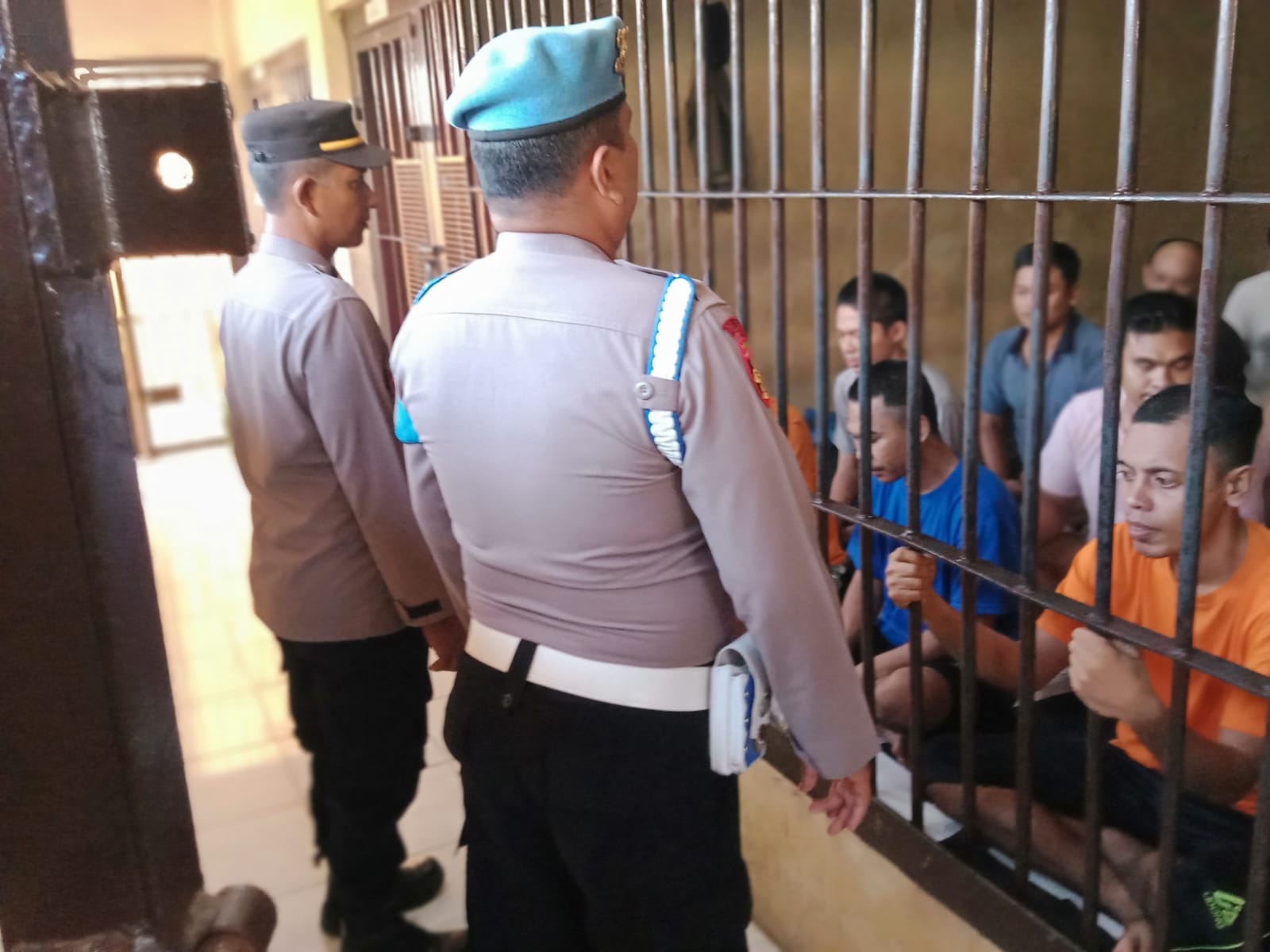 Pada pengecekan tahanan ini, Perwira pengawas didampingi Perwira Pengendali Ipda Indra bersama piket provos dan tahti.
