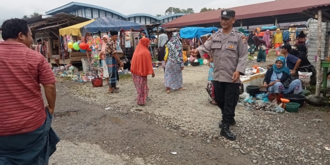 Kanit Lantas beserta anggota Personel Polsek Lawe Sigala melakukan pengaturan arus Lalulintas di pasar tumpah pekan Lawe Sigala, wilkum Polsek Lawe Sigala, Jumat (10/03/23) Pukul.10.00 Wib.