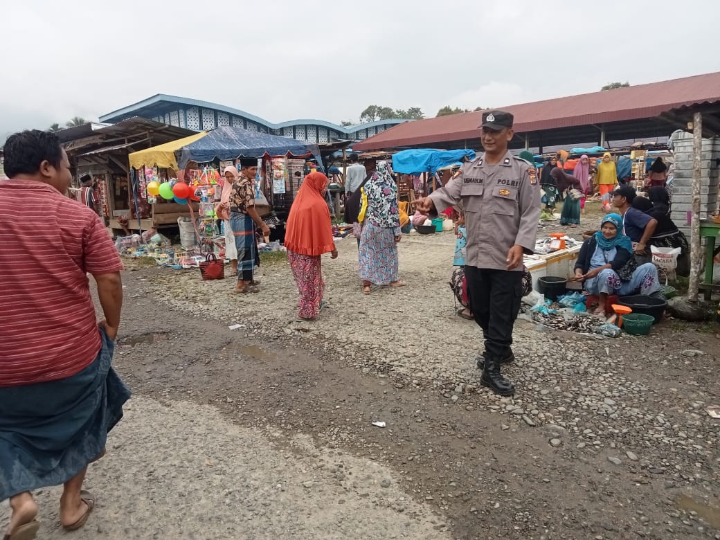 Kanit Lantas beserta anggota Personel Polsek Lawe Sigala melakukan pengaturan arus Lalulintas di pasar tumpah pekan Lawe Sigala, wilkum Polsek Lawe Sigala, Jumat (10/03/23) Pukul.10.00 Wib.