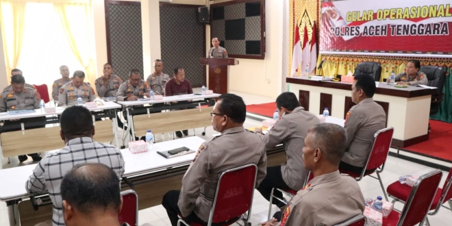 Dalam rangka Analisa dan evaluasi kinerja dan keberhasilan jajarannya, Kapolres Aceh Tenggara AKBP R. Doni Sudarsono S.I.K, S.H. di dampingi Wakapolres Aceh Tenggara Kompol Ichsan Pradita, S.E, Pimpin pelaksanaan Gelar Operasional dan Pembinaan dalam rangka Analisa dan Evaluasi (Anev) bulanan bertempat di Aula Wira Pratama Polres Aceh Tenggara, Selasa (14/3/2023) sekira pukul 09.00 Wib.