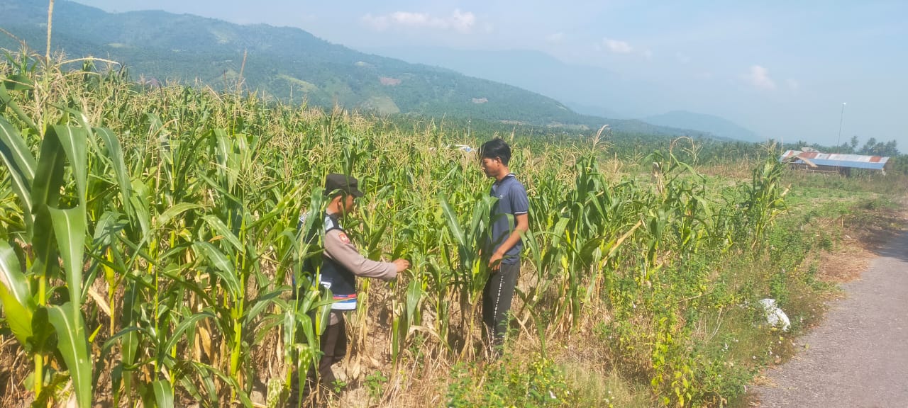Bhabinkamtibmas Polsek Babul Rahmah Bripka Ilham tinjau Ketahanan Pangan dan membantu warga dalam rangka mewujudkan ketahanan pangan masyarakat di Desa Sumur Alas kecamatan Babul Rahmah Kabupaten Aceh Tenggara, Sabtu (18/3/23) pukul 09.30 wib.