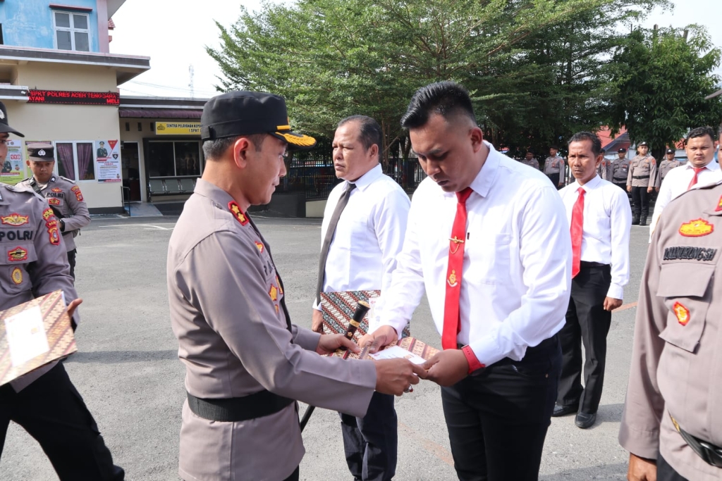 Kepala Kepolisian Resor Aceh Tenggara AKBP R. Doni Sumarsono, S.I.H, M.H memberikan penghargaan kepada personel Polres Aceh Tenggara yang berprestasi. Senin (20/03/2023)