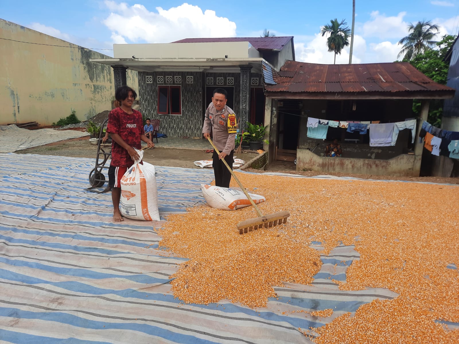 Bhabinkamtibmas Desa Lawe Sumur Polsek Babul Rahmah Polres Aceh Tenggara melaksanakan kegiatan Sambang dengan warganya dan membantu para petani yang sedang panen jagung/menjemur hasil panen, sebagai bentuk pendekatan dengan masyarakat dan mempererat tali silaturahmi. Kamis (25/05/2023)