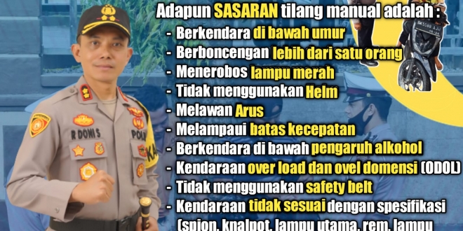 Untuk sasaran tilang manual, sebutnya, yakni pengemudi kendaraan yang berkendara di bawa umur atau berboncengan lebih dari satu orang.