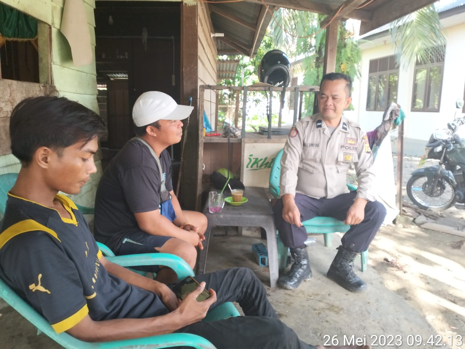 Bhabinkamtibmas melaksanakan kegiatan sambang dan dialogis dengan masyarakat Desa binaanya , hal itu dilakukan guna menjaga tali silaturahmi serta menyampaikan himbauan-himbauan Kamtibmas kepada masyarakat, Jumat (26/05/2023).