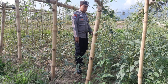 Bhabinkamtibmas Polsek Lawe Alas Bripka Dedi tinjau Ketahanan Pangan dan membantu warga dalam rangka mewujudkan ketahanan pangan masyarakat di Desa Rumah Luar Kecamatan Tanoh Alas Kabupaten Aceh Tenggara, Sabtu (27/5/23) pukul 10.00 wib.