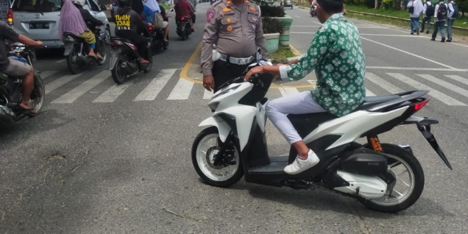 Kasat Lantas Aceh Tenggara Iptu Abdullah Husain, S.H P memberikan teguran secara langsung kepada para pelajar yang mengendarai sepeda motor saat hendak berangkat kesekolah, Senin (29/05/2023).