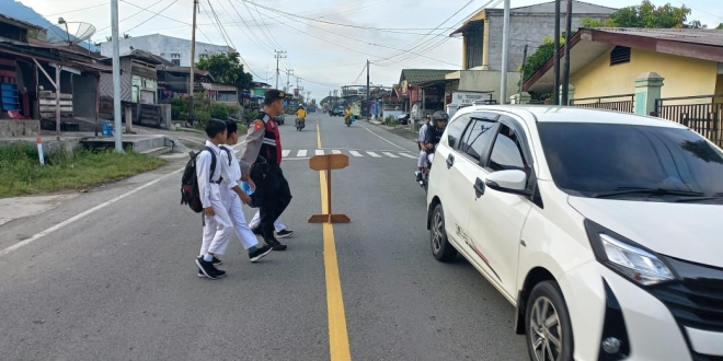 Bhabinkamtibmas Polsek Semadam Polres Aceh Tenggara Bripka Yusmal melaksanakan giat Strong Point di depan SDN Semadam Kecamatan Semadam KAbupaten Aceh Tenggara. Senin (29/05/2023)