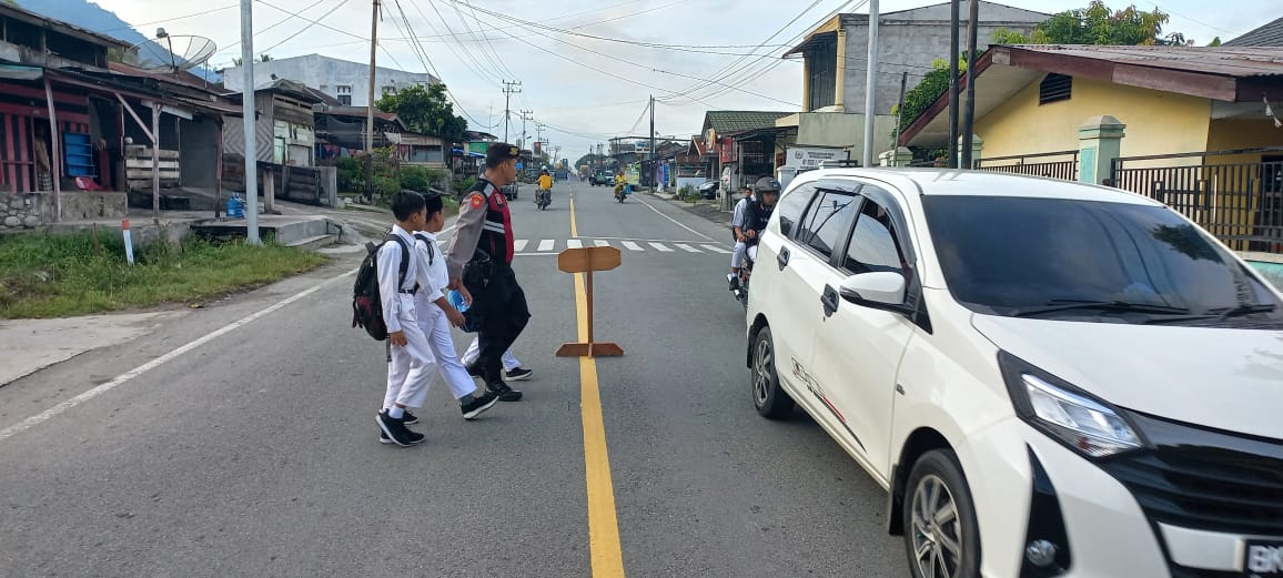 Bhabinkamtibmas Polsek Semadam Polres Aceh Tenggara Bripka Yusmal melaksanakan giat Strong Point di depan SDN Semadam Kecamatan Semadam KAbupaten Aceh Tenggara. Senin (29/05/2023)