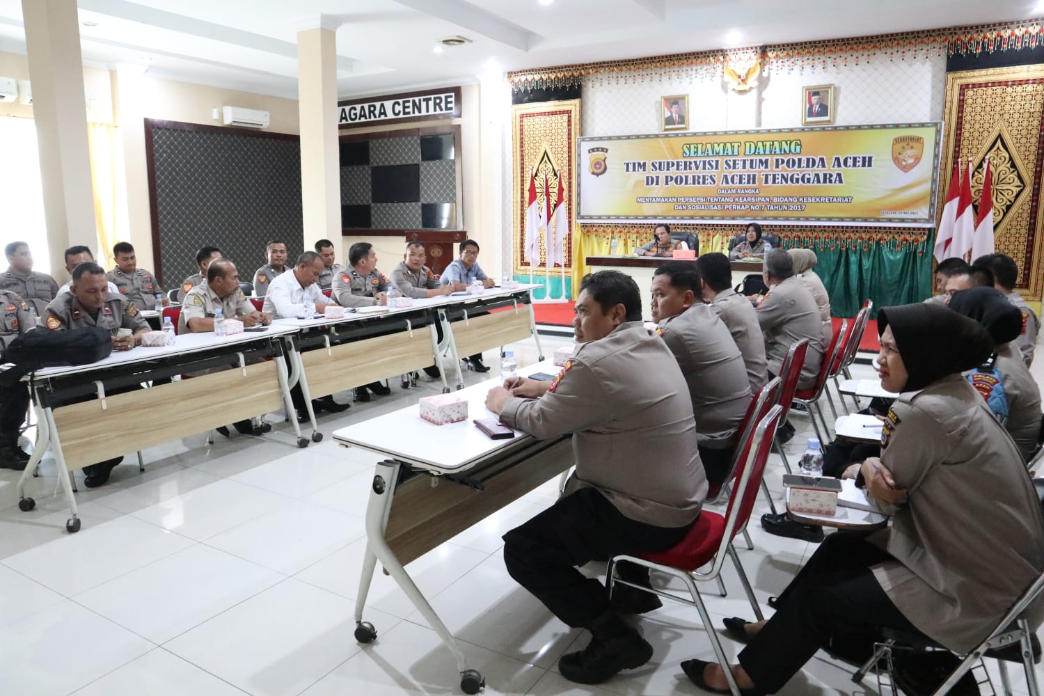 Wakapolres Aceh Tenggara Kompol Ichsan Pradita, S.E. menerima kunjungan Supervisi dari Sekretariat Umum (Setum) Polda Aceh dibawah pimpinan Kompol Iradah. Senin (29/05/2023).