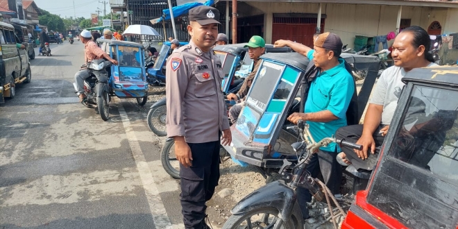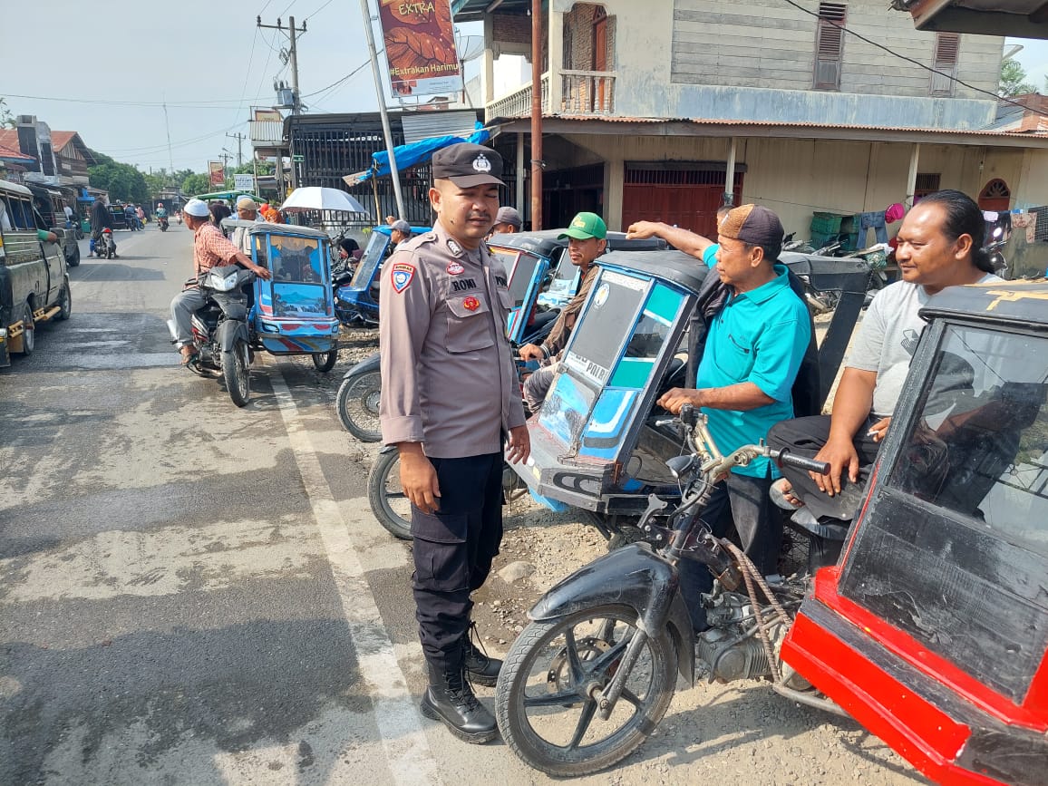 Jajaran Polsek Polres Aceh Tenggara melakukan sambang dan melakukan teguran humanis kepada tukang becang yang pakir sembarangan. antisipasi kemacetan di pajak pagi kabupaten aceh tenggara, Kamis (22/06/2023) siang.